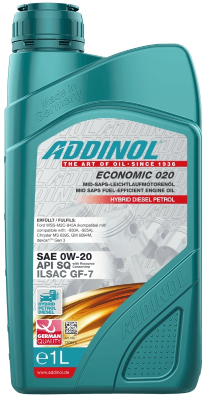 ADDINOL Economic 020 — это моторное масло класса SAE 0W-20 с пониженной вязкостью при высокой температуре и высоком градиенте скорости сдвига (HTHS) и топливосберегающими свойствами.